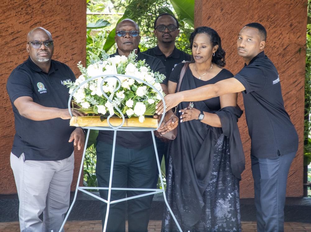 The East African Science and Technology Commission (EASTECO) officials lay a wreath in honour of the victims of the genocide at Kigali Genocide Memorial on Friday. All photos by Craish BAHIZI