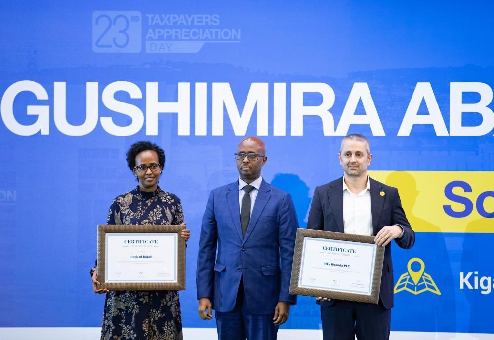 MTN Rwandacell Plc and Bank of Kigali received honorary recognition for maintaining top taxpayer status for ten consecutive years.