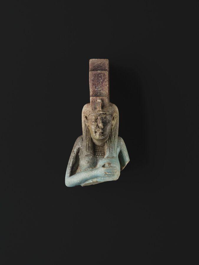 Among them are part of a statuette of the Egyptian Goddess Isis suckling her son Horus and a ceramic plaque with the eye of Horus.