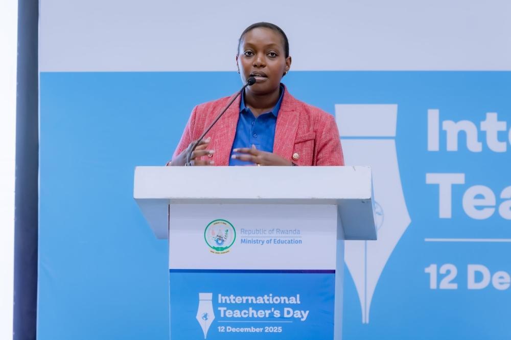 The Minister of State for Education Claudette delivers her remarks during the celebration of International Teachers’ Day held on Friday, December 12, in Kirehe District. Courtesy