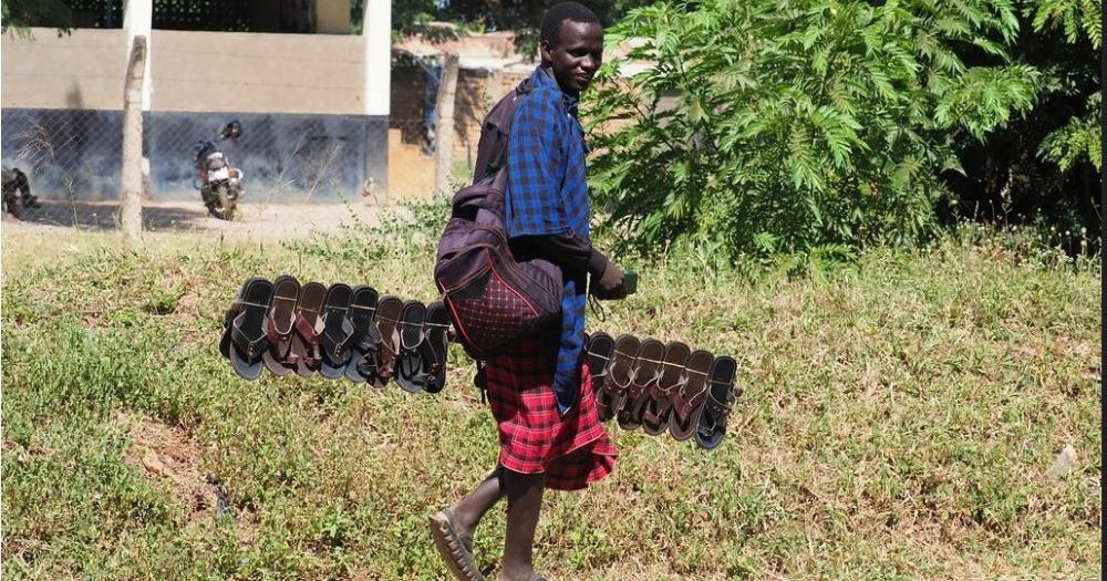 He is one of the many Maasai merchandise hawkers who are seen moving around Kigali, armed with a long stick, on which the shoes and other handmade crafts are hanging.
