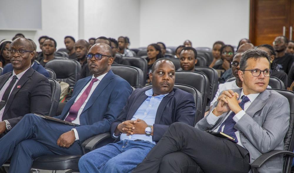 Participants follow the presentation of University of Rwanda Vice-Chancellor Didas Kayihura Muganga at the launch of the Bridge Programme in Kigali.