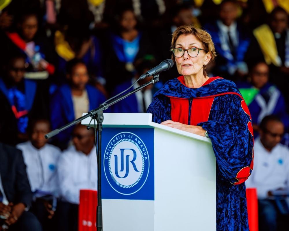 University of Rwanda ’s Chancellor, Patricia L. Campbell, delivers her remarks during the graduation ceremony in Huye on Friday, October 17. Photo by Kellya Keza
