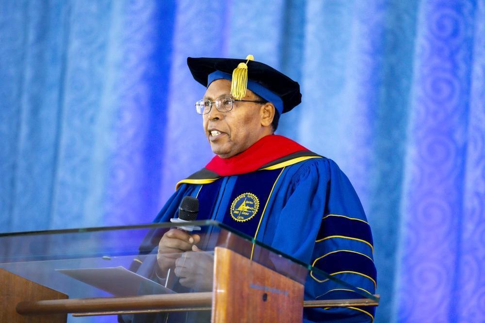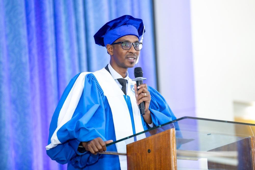 Dr Hesron Byilingiro, the president of the Rwanda Union Mission and chairperson of the AUCA Council, speaks at the graduation ceremony
