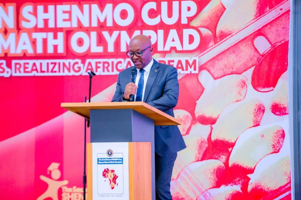 Rwanda Education Board Director General Nelson Ndagijimana speaks at the Abacus Mental Math competition
