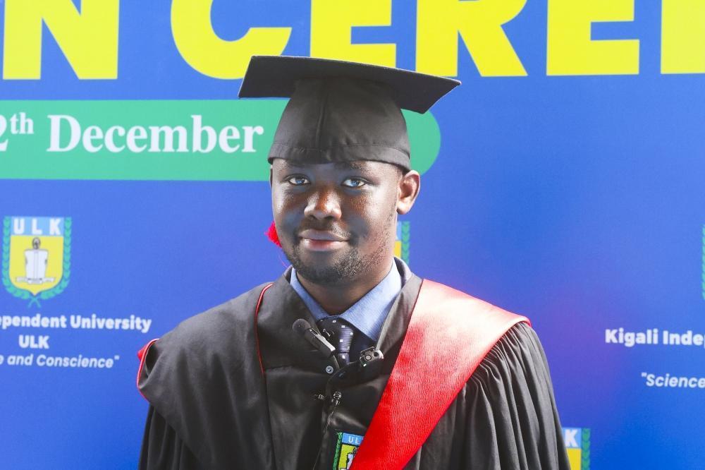 Delino Gayweh, a Master of Finance graduate, during the 22nd Kigali Independent University and 9th ULK Polytechnic Institute Graduation Ceremony held on December 12, 2025.