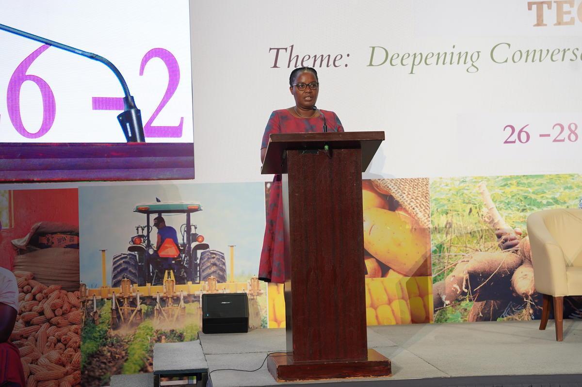 Minister of Agriculture and Animal Resources ,Gerardine Mukeshimana addresses the conference