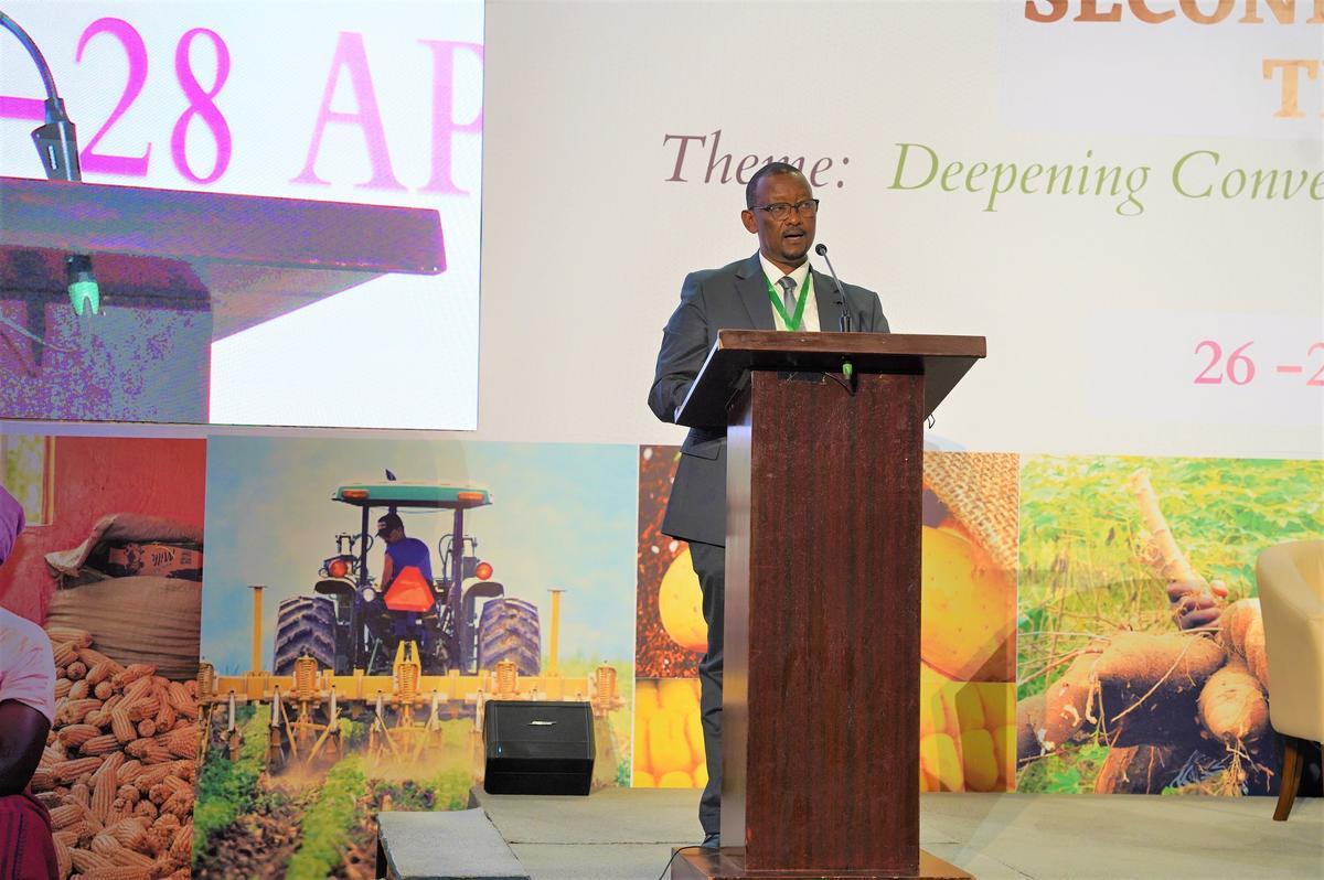 Executive Director of the African Agricultural Technology Foundation (AATF) Canisius Kanangire delivers remarks during the conference in Kigali.All photos by Craish Bahizi