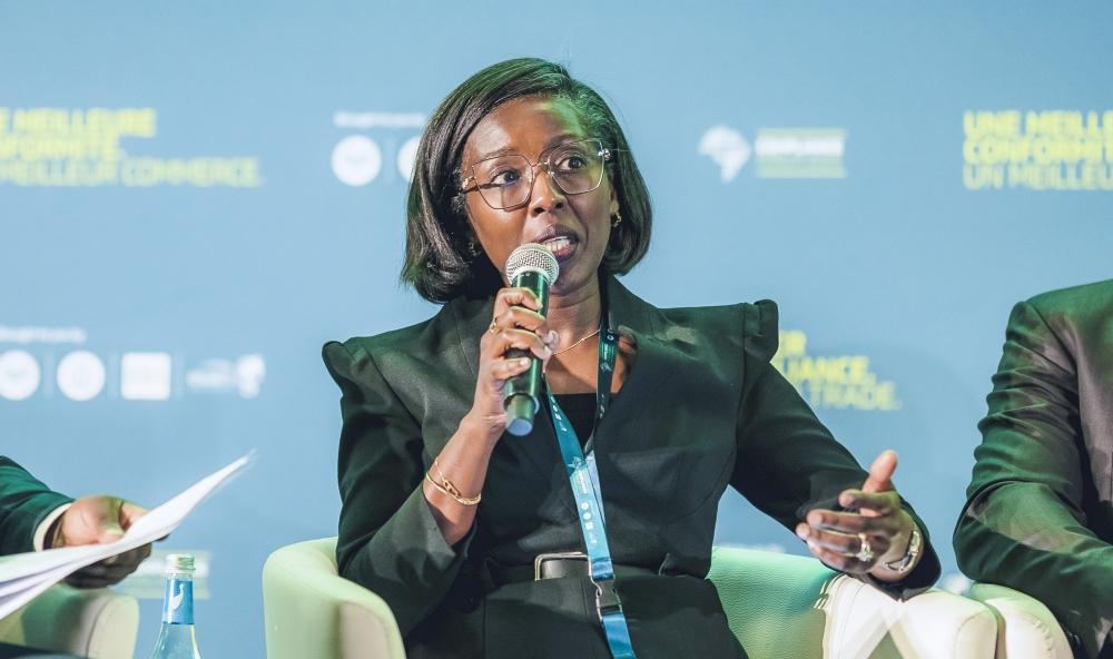 Carine Umutoni, Managing Director of Ecobank Rwanda speaks at a panel discussion during the African Export-Import Bank (Afreximbank) Compliance Forum (ACF) in Kigali on Wednesday, November 12. Photos by Kellya Keza