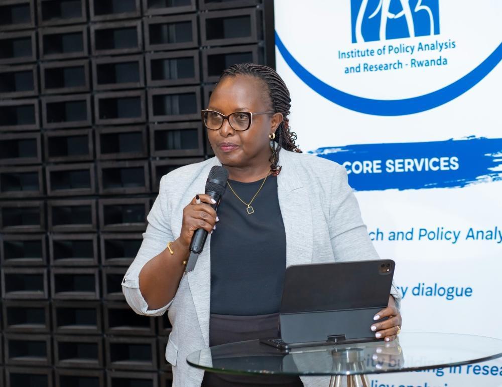 Eugenie Kayitesi, Executive Director of IPAR–Rwanda, speaking during the dissemination event held in Kigali. Courtesy Photo