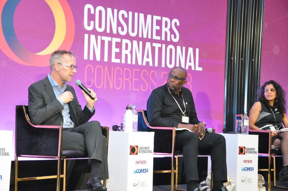 Micheal Mungoma, the Director of Programs at Youth Education Network (YED) an organization in Kenya speaking during a session at the Consumer International Congress in Nairobi Kenya.Courtesy