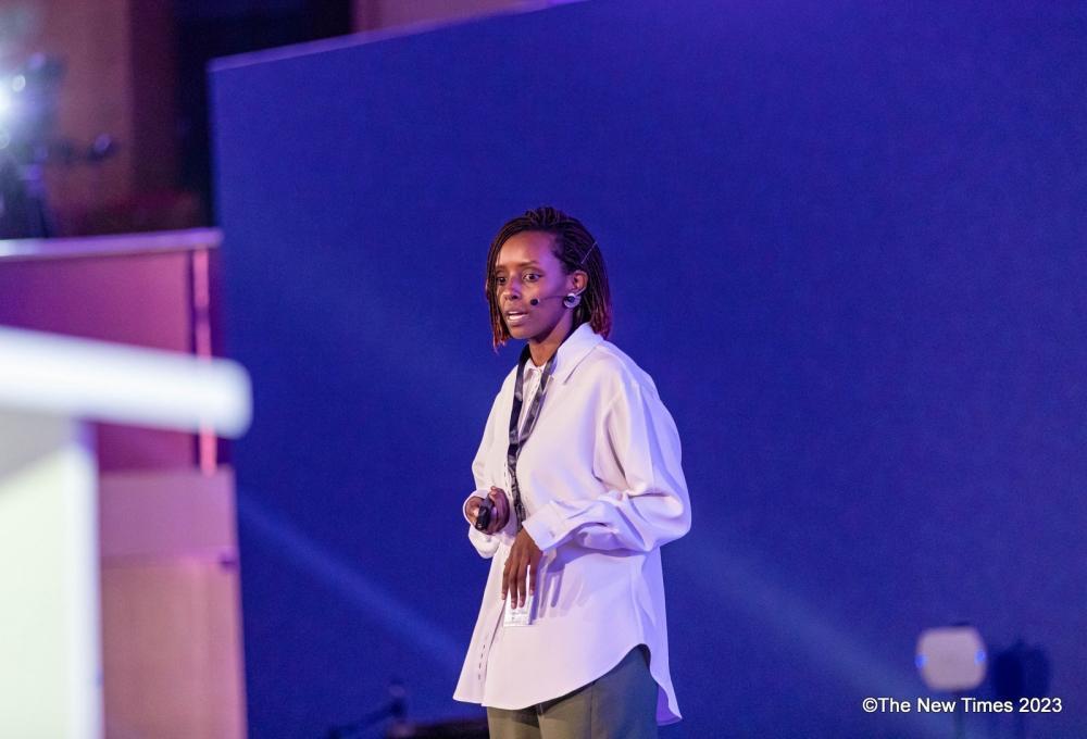 Cynthia Umutoniwabo pitching Loopa’s solution during Hanga Pitchfest 2023. Umutoniwabo said that Hanga Pitchfest played a role in fostering their connections with like-minded farmers and entrepreneurs