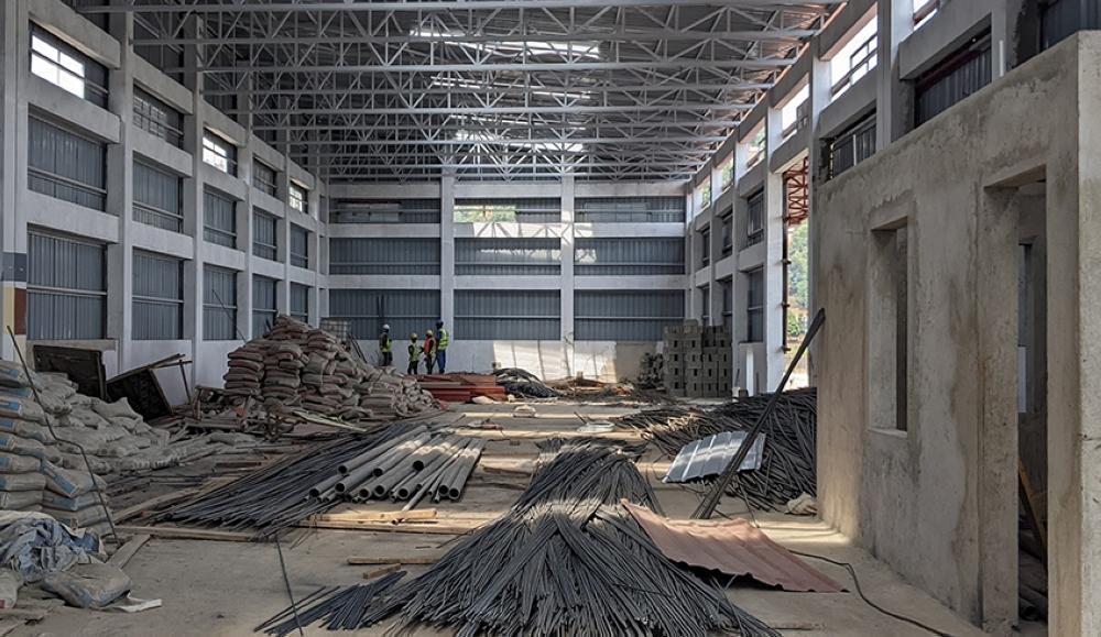 Inside a break bulk store of Rubavu Port that is still under construction.