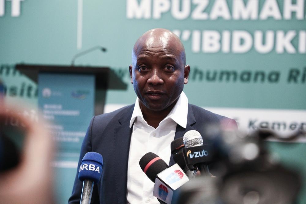 UNDP Resident Representative for Rwanda, Maxwell Gomera speaks to journalists during the event