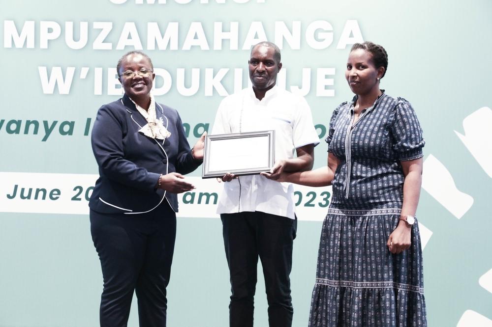 Environment Minister Jeanne d’Arc Mujawamariya and Director General, Rwanda Environment Management Authority (REMA), Juliet Kabera hand over a certificate