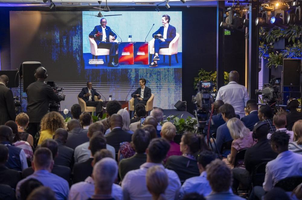 Delegates follow an interaction session of President Kagame and Niklas Adalberth, Founder of Norrsken at the event on Wednesday ,November 8. Photo by Village Urugwiro