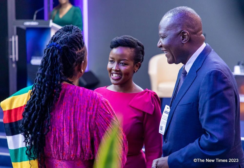 Minister of ICT and Innovation Paula Ingabire chats with other delegates. Photo by Dan Gatsinzi