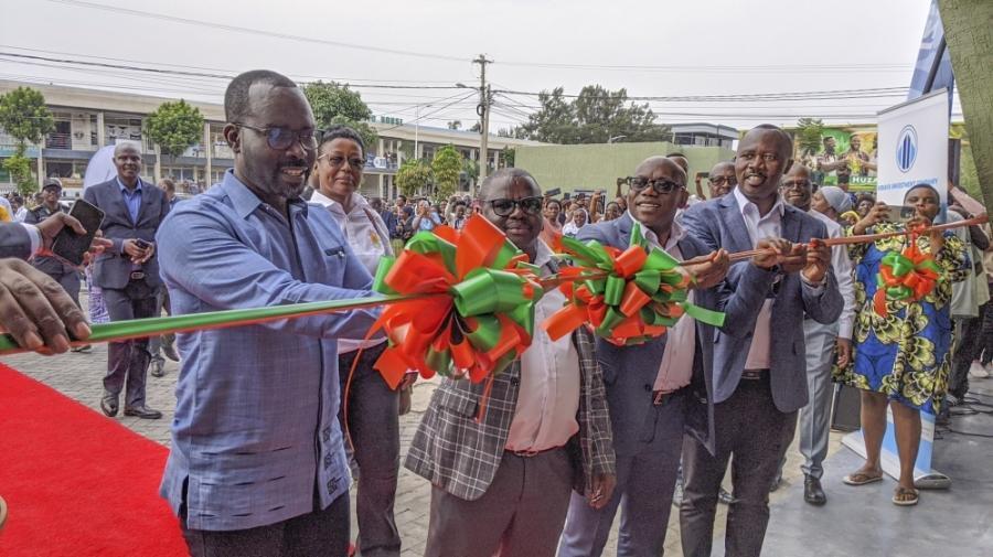 The Minister of Trade and Industry, Prudence Sebahizi, and other officials at the opening ceremony of Gisenyi Market.