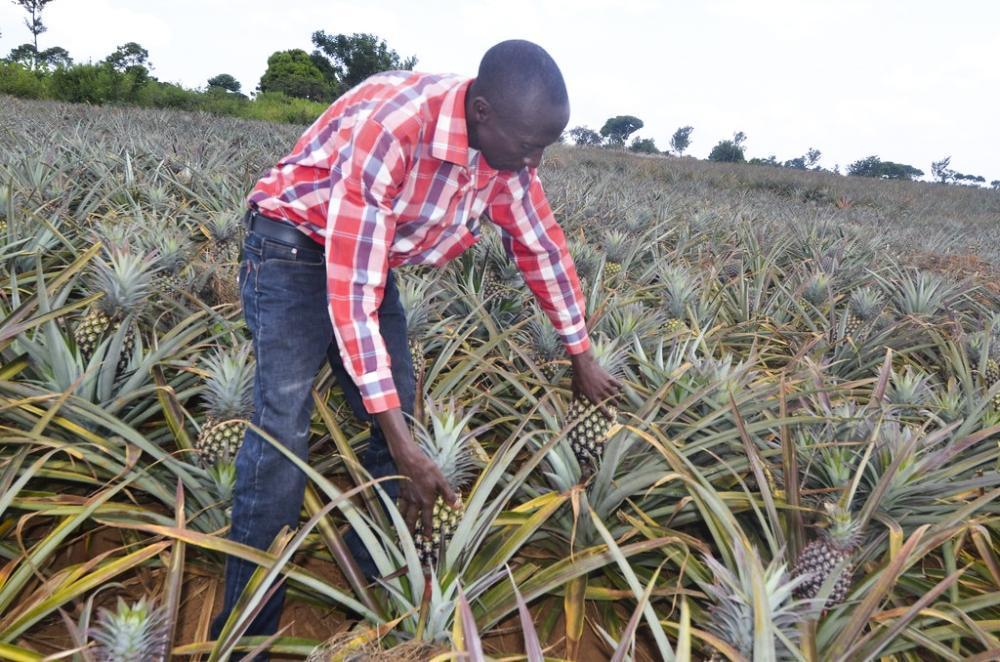 A pineapple farmer works in his farm in Mugesera Sector in Ngoma District. Photo by Sam Ngendahimana