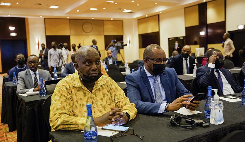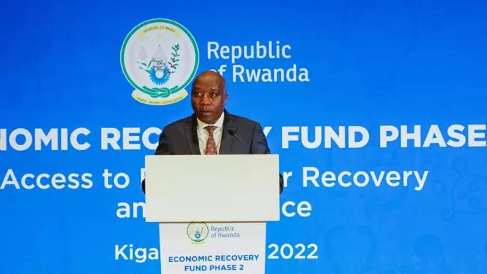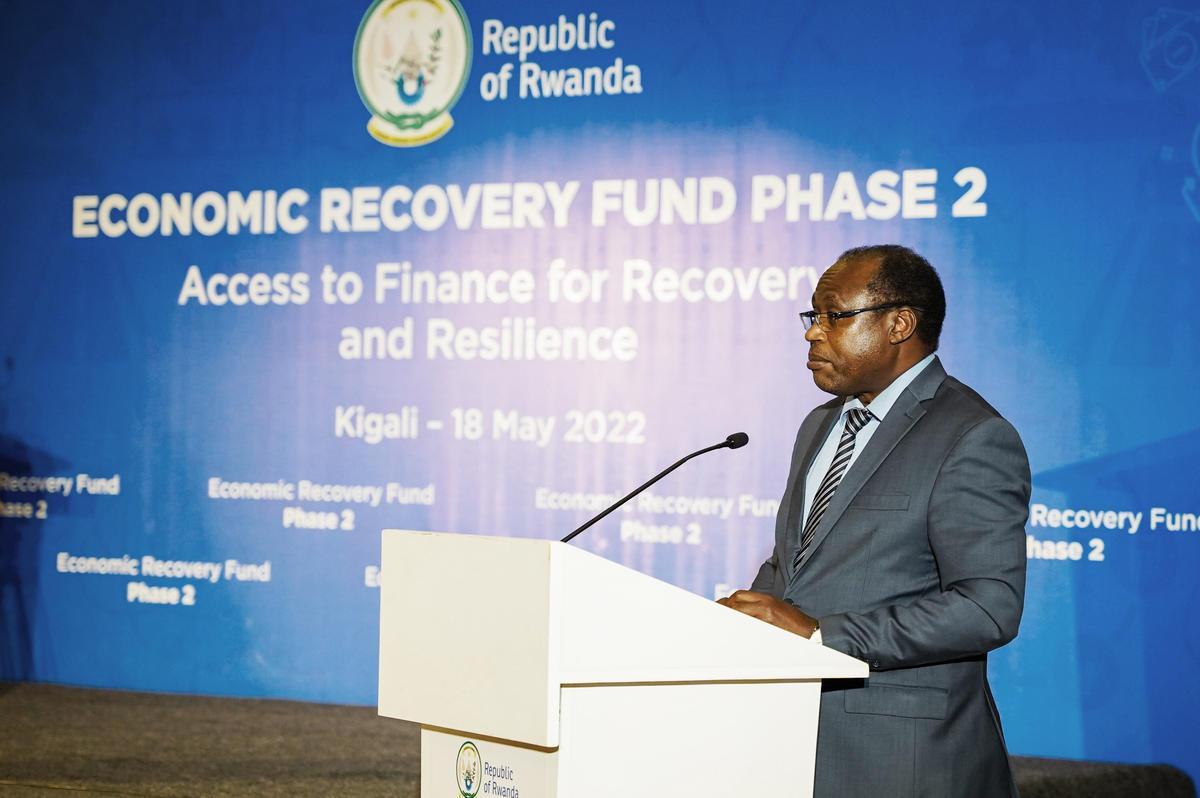 Minister of Finance and Economic planning Uzziel Ndagijimana speaks at the launch of the second phase of the recovery fund in Kigali on May 18.