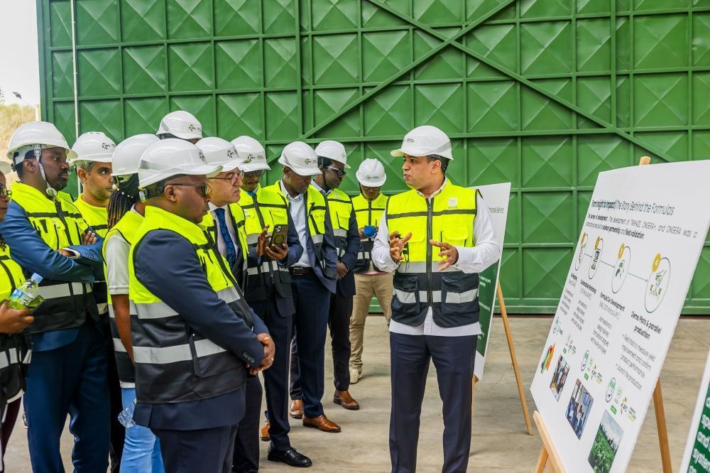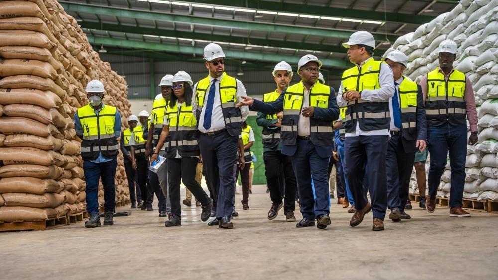 Officials during a guided tour of the company’s store at the launch in Bugesera Special Economic Zone.