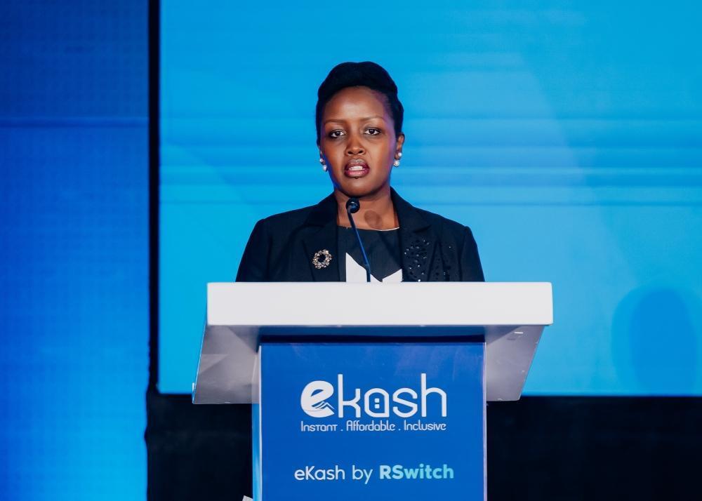 Minister of ICT and Innovation, Paula Ingabire, speaks during the launch of eKash in Kigali on Friday, December 5