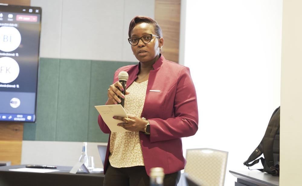 IDH Rwanda Country Manager Sylvie Nirere speaks during the Avocado Sea Freight Trial Workshop for a review of outcome of first container shipment to Dubai, on June 7, 2023 in Kigali. (Emmanuel Dushimimana)