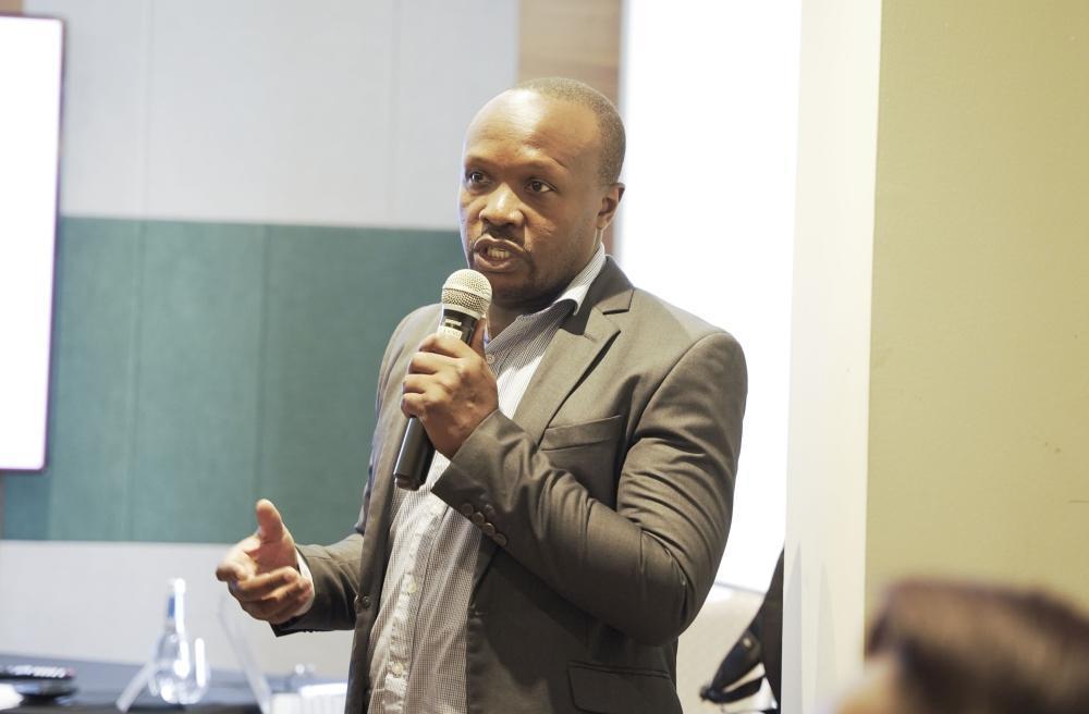 The Chairman of the Horticulture Exporters Association of Rwanda, Robert Rukundo, makes a point during the Avocado Sea Freight Trial Workshop on June 7, 2023 in Kigali (Emmanuel Dushimimana)