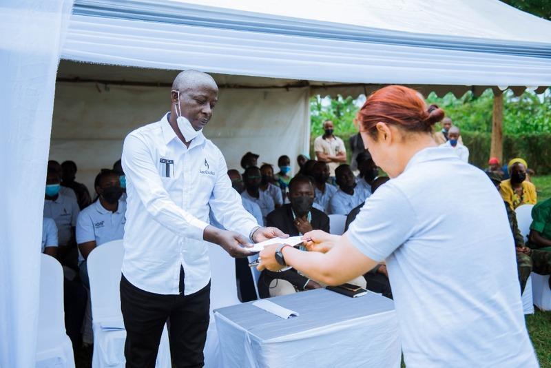 The Chief Executive of AOS Ltd, Seong Woo Kim, delivering remarks on April 29 at Rukumberi Memorial. / Courtesy