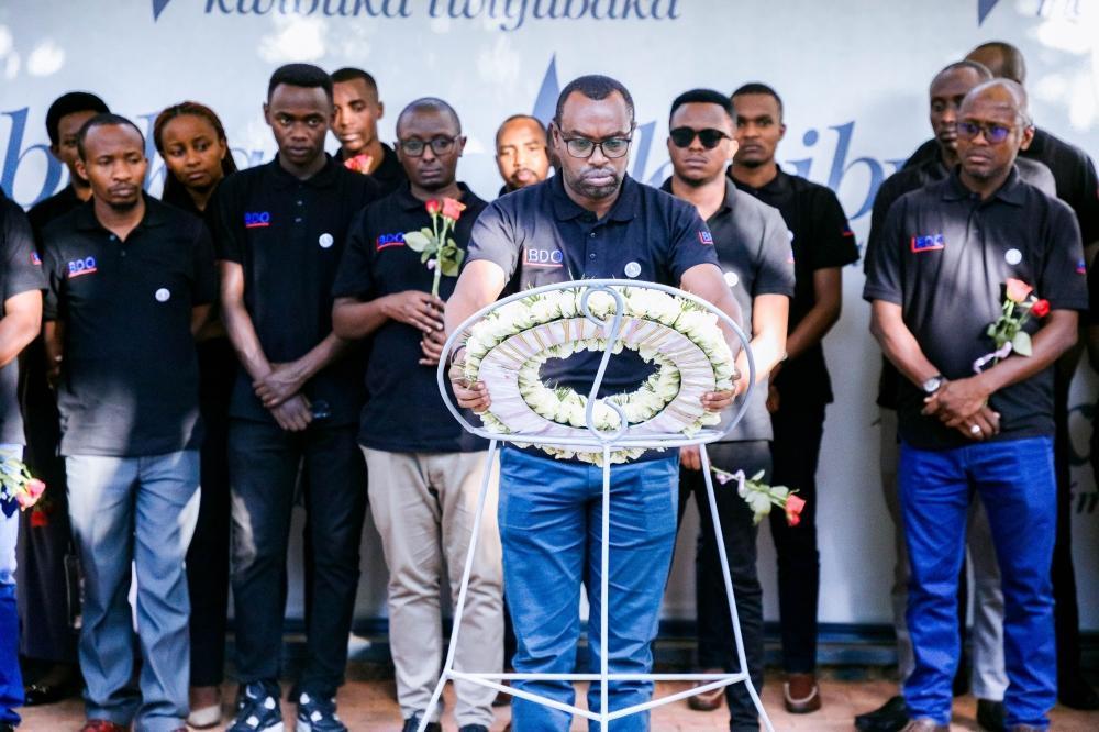 BDO Managing Partner Emmanuel Habineza and other staff members lay wreaths to pay tribute to victims of the 1994 Genocide against the Tutsi, at the Kigali Genocide Memorial on Thursday, June 8. All photos by Craish Bahizi