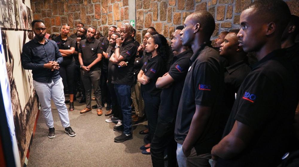 BDO staff during the guided tour of the Kigali Genocide Memorial on Thursday.