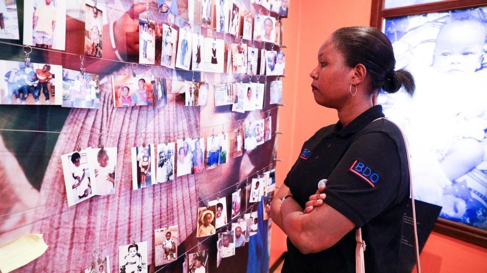 One of BDO staff looks pictures of children who were killed during the Genocide Against the Tutsi. Their visit to the Kigali Genocide Memorial took place at a time Rwandans are observing 100 days of Genocide commemoration.