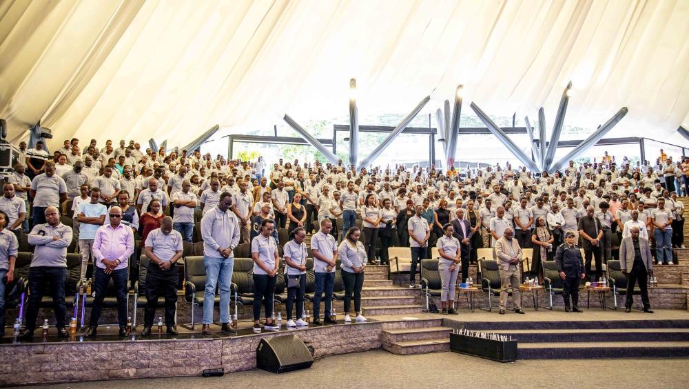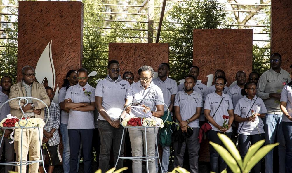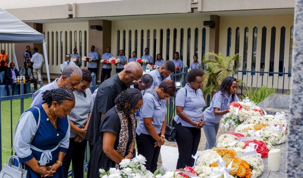 Mourners observe a moment of silence at as BK Group honoured the victims of the 1994 Genocide against the Tutsi on April 11.