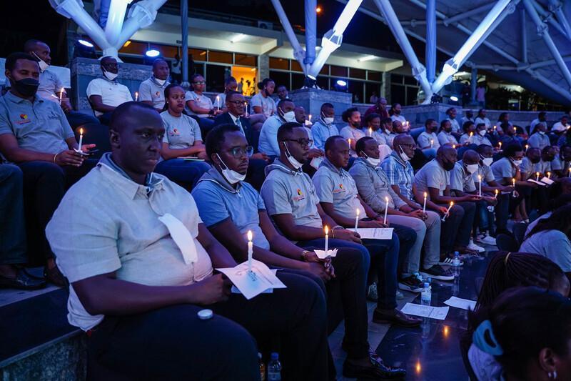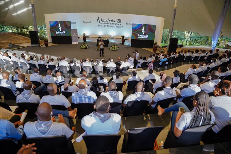 They laid wreaths at the memorial before being led into its auditorium for discussions. They had an opening prayer that was preceded by testimony from Genocide survivors who works at Cogebanque and listened to songs performed by renowned artists Dieu Donne Munyanshoza and Grace Mukankusi that talked about the 1994 genocide against the Tutsi.