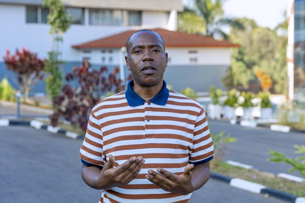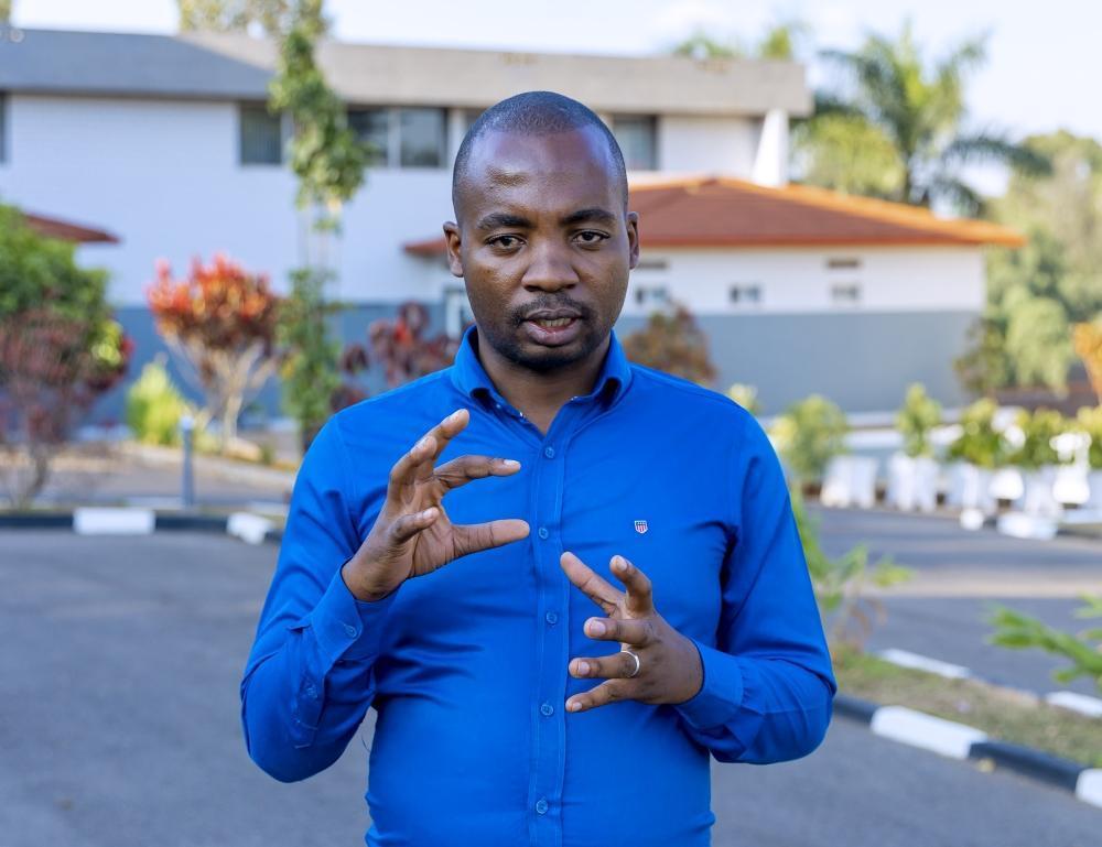 Damien Hanyurwimfura, Associate Professor and Acting Director African Center of Excellence in Internet of Things (ACEIoT) speaks to journalist at the training session of beekeepers on Saturday, July 22. Courtesy