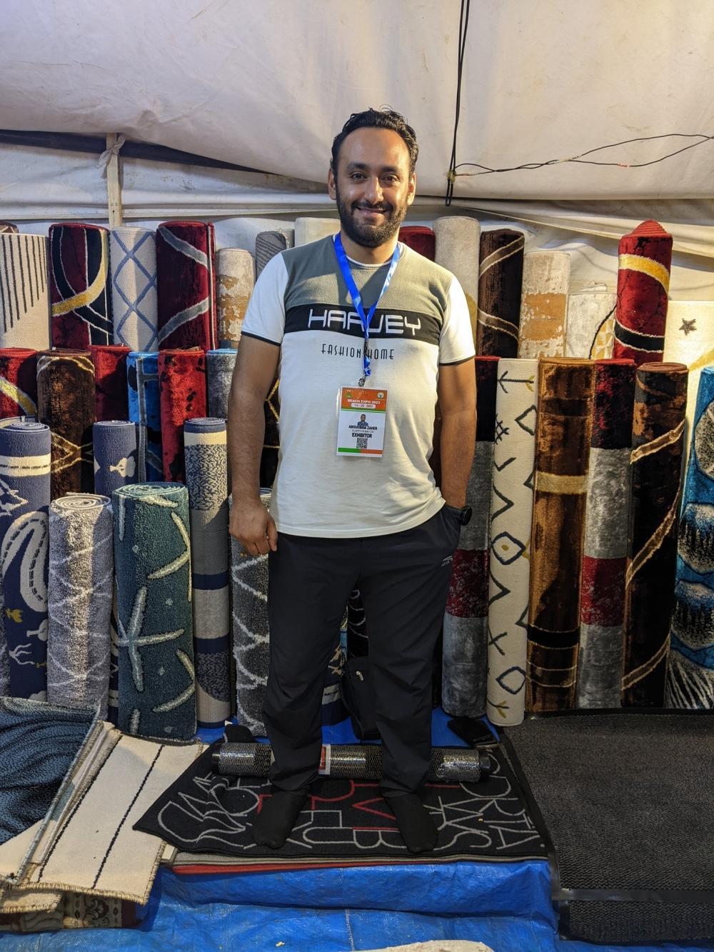 Egyptian exhibitor of carpets, Zaher Bouobaida, at the expo.