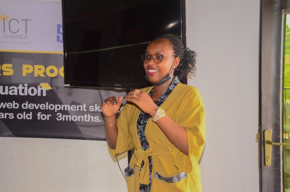 Consolatrice Byiringiro, Programs Manager at KLab speaks to students who completed the training session . Courtesy