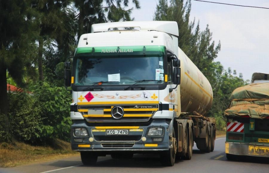 Cross border trucks that transport fuel from Mombasa to Kigali.
