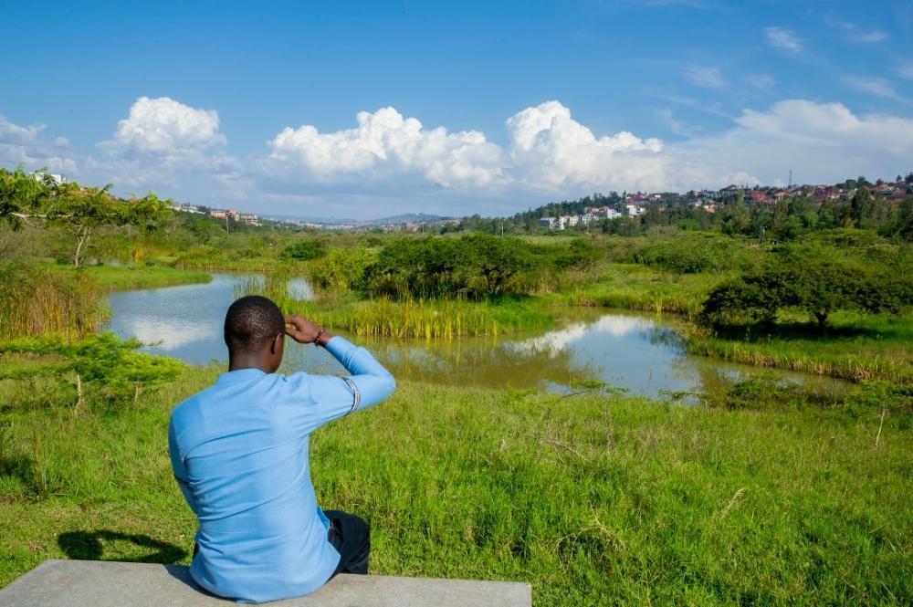 A resident sits at the newly revamped Nyandungu Wetland Ecotourism in Kigali