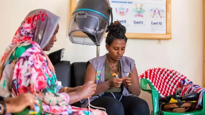 Crossing the gates of the camp, you pass through an occupational therapy centre where women often come to learn how to weave traditional materials and hair dressing among other life skills.