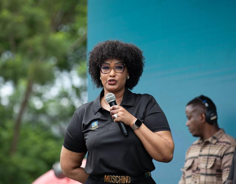 Chantal Kagame, CEO of Mobile Money Rwanda Limited, speaks during the launch of the “Iremere Ejo Heza” campaign on November 25. Photo by Dan Gatsinzi.