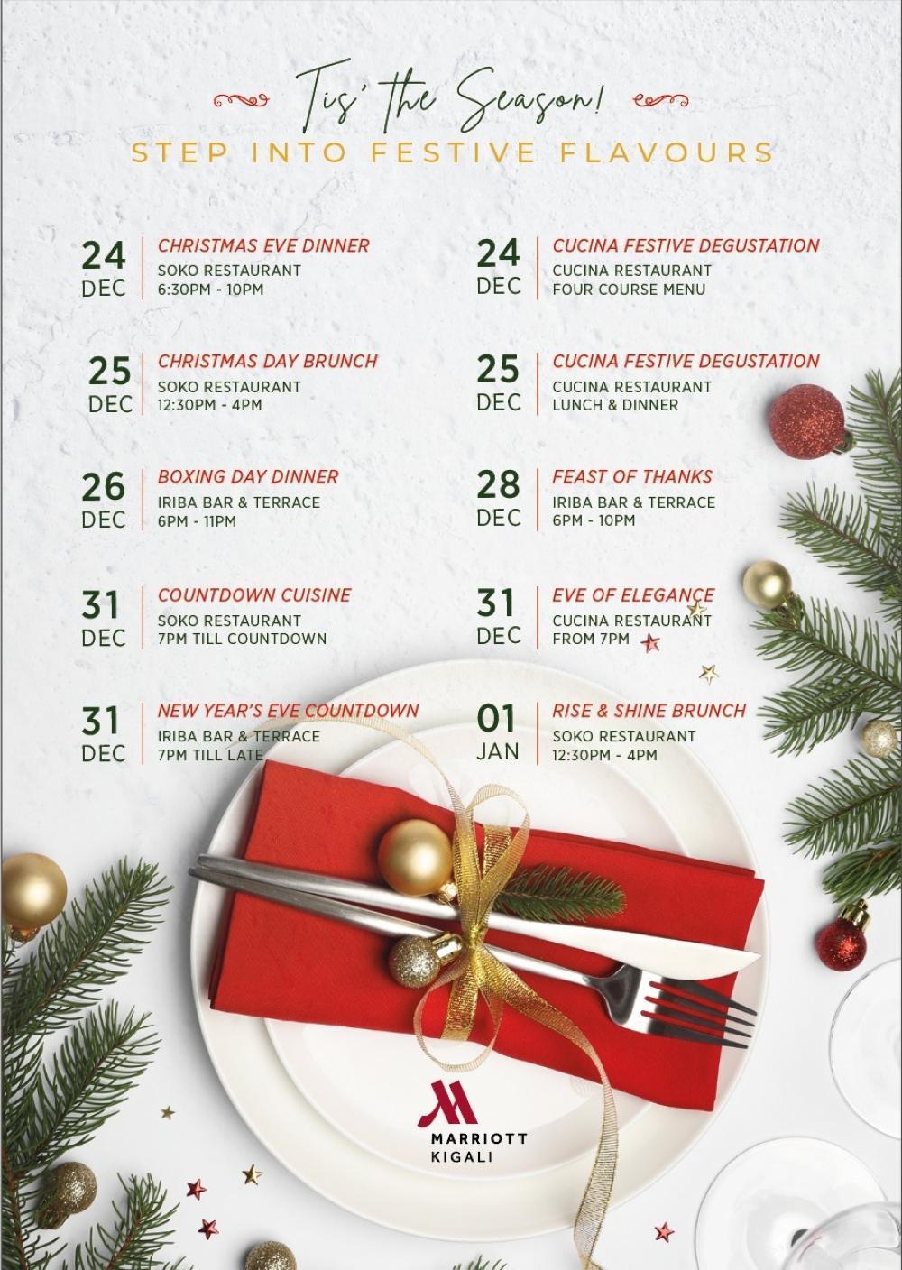 Kigali Marriott Hotel has also unveiled its festive season dining programme, detailing a series of special culinary experiences running from December 24 to January 1.