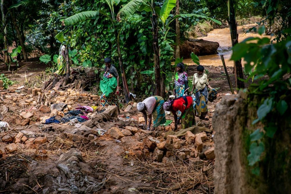 Survivors of the disasters salvage some of their properties that were taken away by floods. The government is implementing a gradual phase-down of temporary facilities that have provided shelter to 20,000 people displaced by the devastating River Sebeya flooding