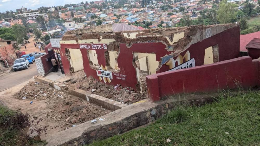 Part of Impala Resto-Bar, located near the former La Palisse Nyandungu, has been demolished. Several houses between Impala Bar and La Palisse are also being cleared on both sides of the road.