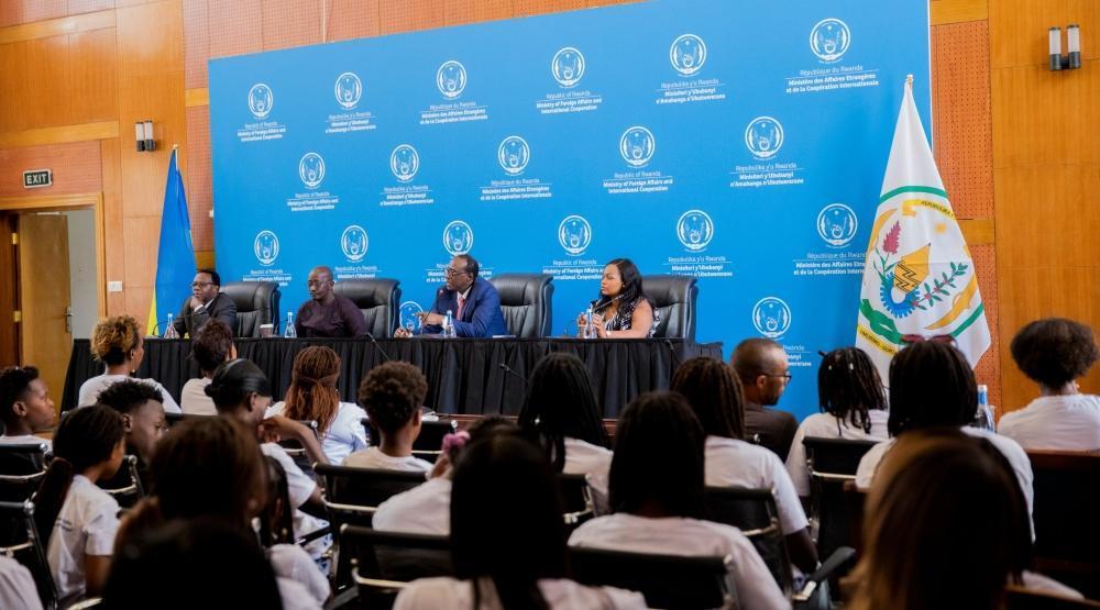 Africa-Press – Rwanda. In an endeavor to promote a robust sense of cultural and national pride, the Minister of State in Charge of East African Community at the Ministry of Foreign Affairs and International Cooperation (MINAFFET), Prof Manasseh Nshuti, initiated a dialogue with 140 young Rwandans from the diaspora. These youths come from countries such as Belgium, the United Kingdom, and Switzerland. The discussion was on topics such as heritage, language, and patriotism.