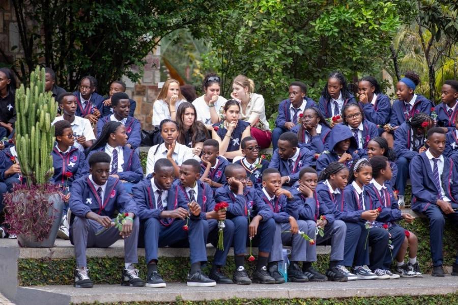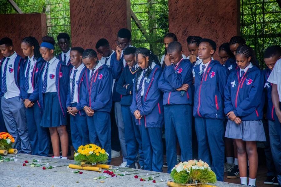 Students observe a moment of silence in honour of the victims of the Genocide against the Tutsi