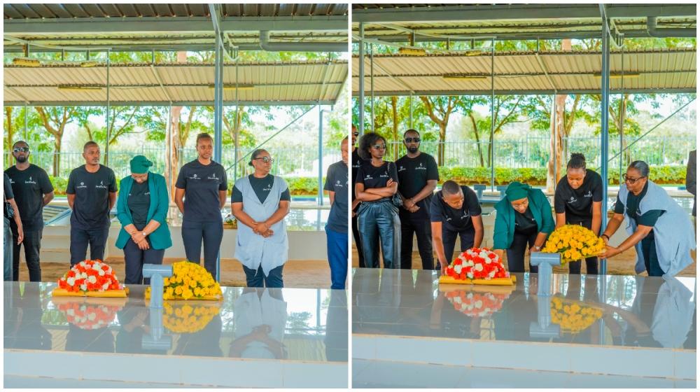 The staff of OMIR laid wreaths on the graves of the victims at the memorial site and were taken to the Genocide Survivors’ Village, located in Kamabuye Sector in Nyamata, for a tour and discussions.