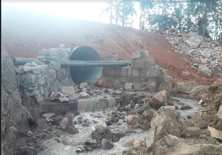 The road was rehabilitated by increasing the conveyance capacity of the water channel that crosses underneath the road as well as recons.