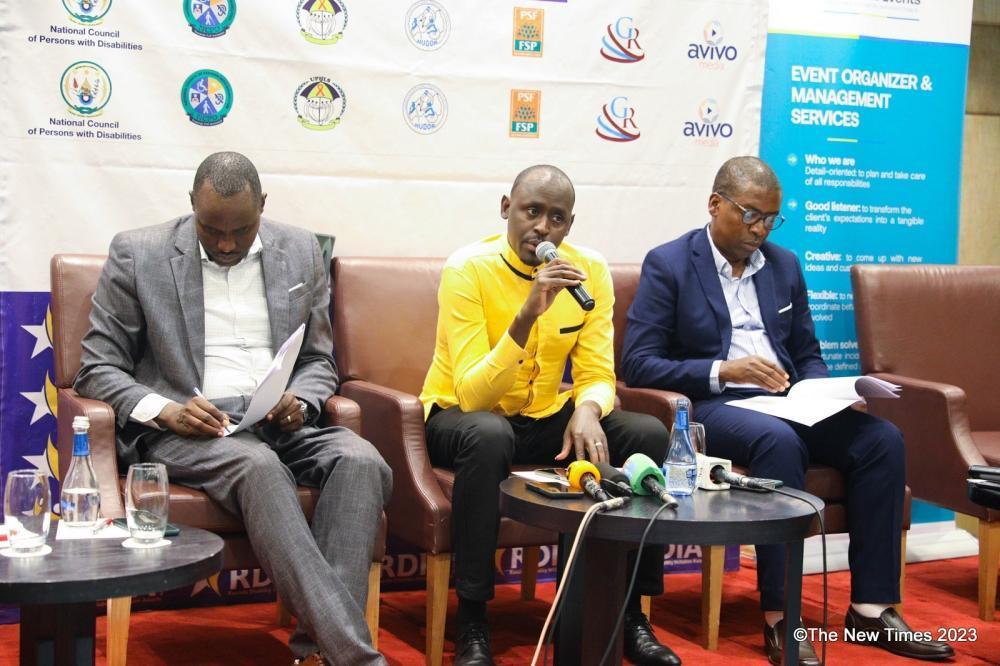 Nathan Ntaganzwa, the manager of Thousand Hills Events addresses journalists on launch of the first-of-its-kind ‘Rwanda Disability Inclusion Awards 2023’. PHOTOS BY CRAISH BAHIZI