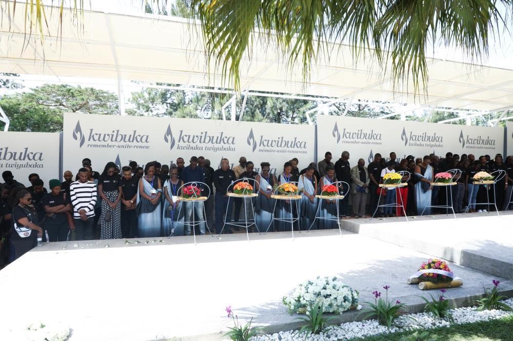The University of Kigali students and staff observe a moment of silence to pay tribute to victims.